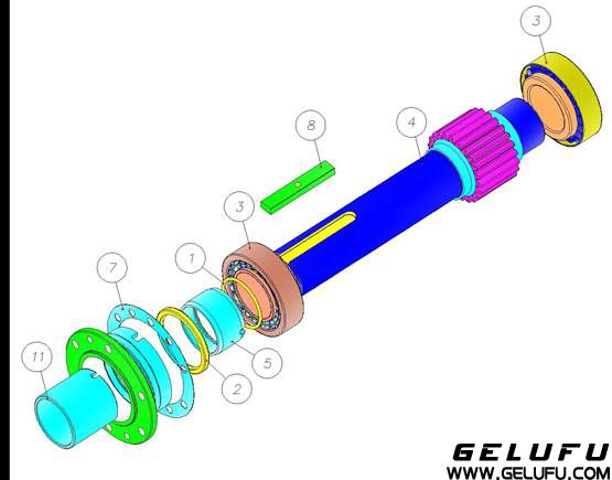 (g) 將隔套安裝到輸入軸上 , 將密封軸套安裝到箱體上,將鍵安裝到輸入軸上。保證結(jié)合面清潔沒有雜物,獲得準(zhǔn)確的軸向間隙。