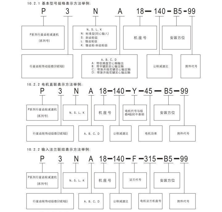 各系列減速機型號選型標示規(guī)則舉例