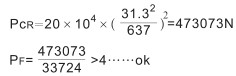 因為施加壓縮載荷,所以按照絲桿穩(wěn)定性校驗計算公式進行校核,再根據(jù)JWB050US尺寸圖得出L=637取安全系數(shù)=4