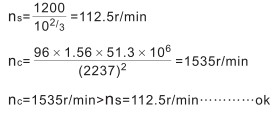 計算舉例:JWM200URH2000D在輸入轉(zhuǎn)速為1200r/min,軸端支撐下運轉(zhuǎn),校核: