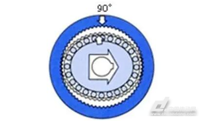 使剛輪固定,波發(fā)生器順時(shí)針旋轉(zhuǎn),柔輪產(chǎn)生彈性變形,與剛輪輪齒嚙合的部位順次移動(dòng)。波發(fā)生器順時(shí)針旋轉(zhuǎn)180度,鋼輪逆時(shí)針移動(dòng)一個(gè)輪齒。波發(fā)生器旋轉(zhuǎn)一周(360度),由于柔輪的齒數(shù)比剛輪少兩個(gè),因此逆時(shí)針移動(dòng)兩個(gè)輪齒。通常將該運(yùn)動(dòng)傳遞作為輸出。
