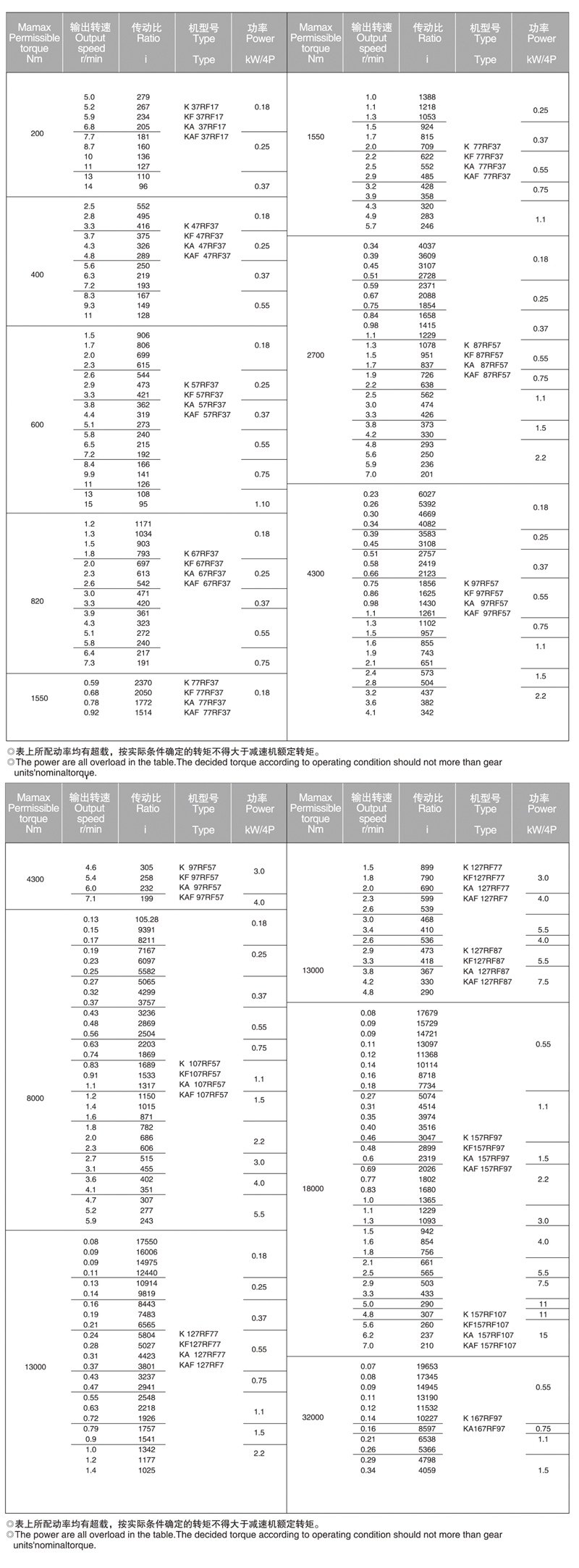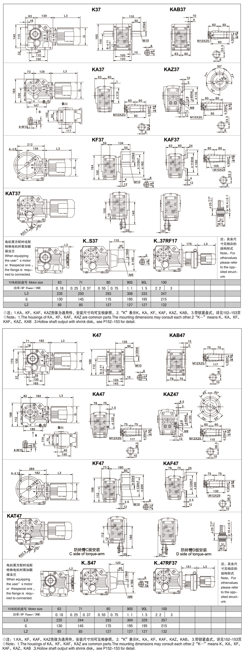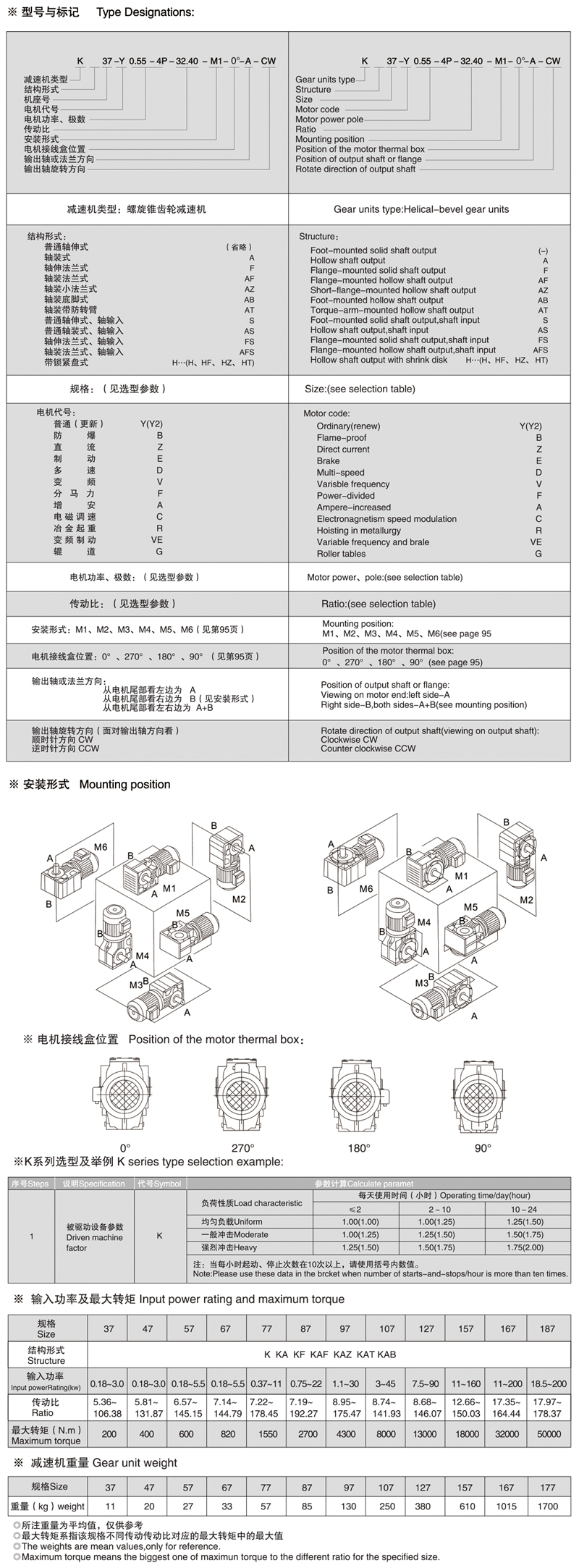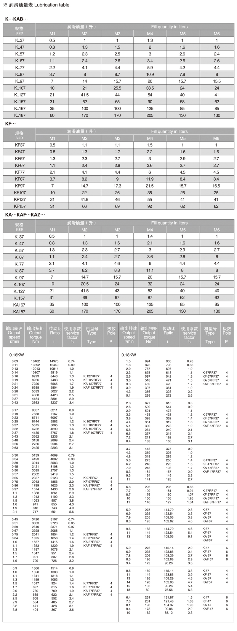 K系列螺旋傘齒輪減速機(jī)選型參數(shù)表及安裝尺寸圖