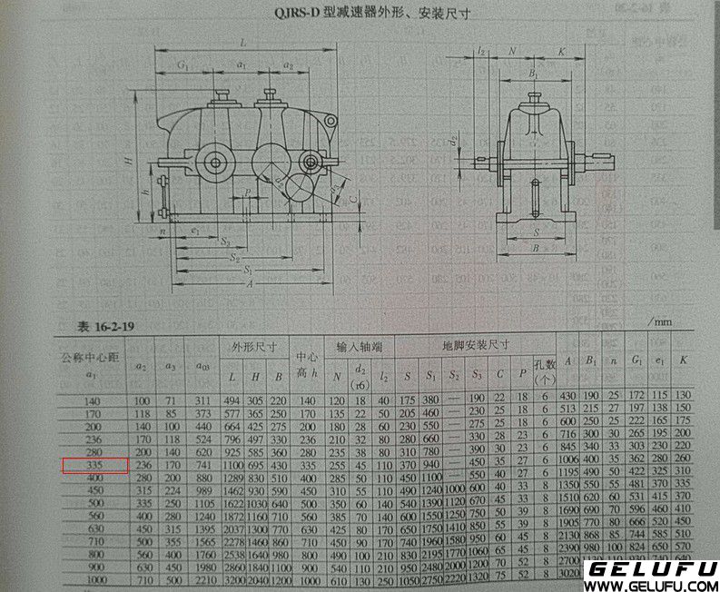 減速機(jī)型號(hào):QJRS-D 335-160 PJB/T 8905.2-1999,見(jiàn)機(jī)械設(shè)計(jì)手冊(cè))