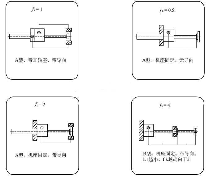 fK:根據絲杠軸承類型和支撐方式給定的修正參數,按下圖確定;