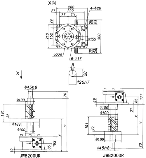 JWB200滾珠絲杠升降機(jī)外形尺寸表