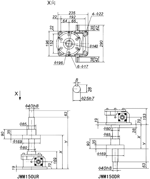 JWM150梯形絲杠升降機外形尺寸表