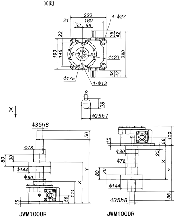 JWM100梯形絲杠升降機(jī)外形尺寸表