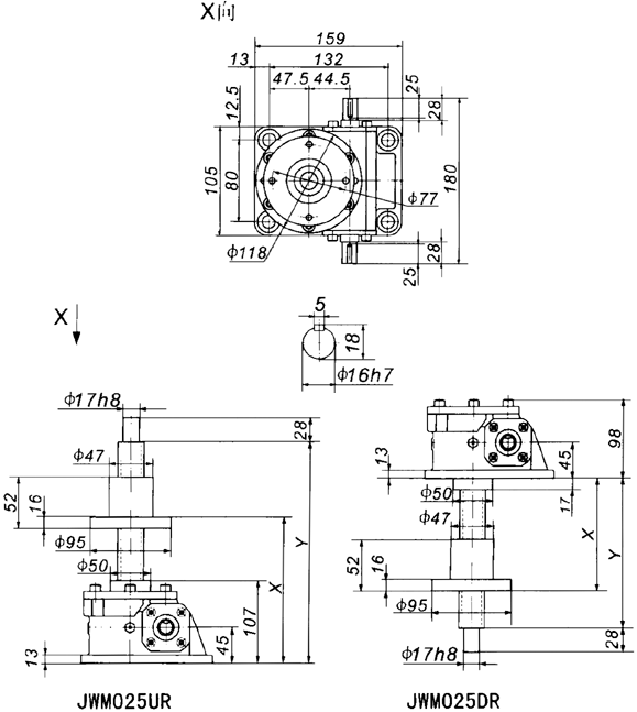JWM025梯形絲杠升降機(jī)外形尺寸表