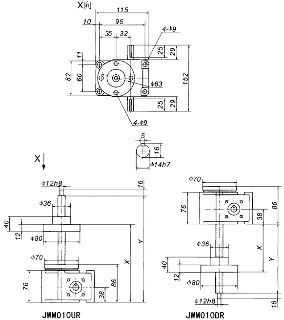 JWM010梯形絲杠升降機(jī)外形尺寸表