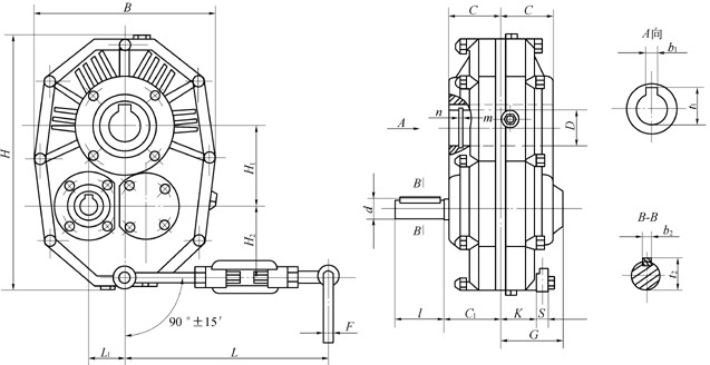 ZJY75、ZJY90、ZJY106、ZJY125、ZJY150、ZJY180、ZJY212、ZJY250、ZJY300、型軸裝式圓柱齒輪減速機(jī)安裝型式及尺寸JB/T 7007-1993
