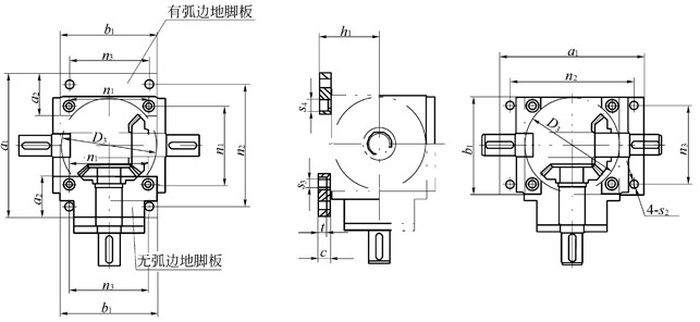 SP系列圓錐齒輪換向機(jī)地腳尺寸 帶圓弧的地腳板可安裝在換向器的任意面,無圓弧的地腳板只能安裝在換向器的平坦面