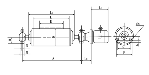 YZW315(320)、YZW400、YZW500、YZW630、YZW800、YZW1000、型外裝式電動滾筒外形及安裝尺寸