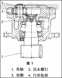 3、結(jié)構(gòu)簡單,且輸出齒軸花鍵下部的螺紋是在加工輸出齒軸時一次完成的,兩部分的同軸度有保證。采用標(biāo)準(zhǔn)圓螺母即可保證輸出齒軸與軸承及輪架一起轉(zhuǎn)動,故制作、安裝方便。