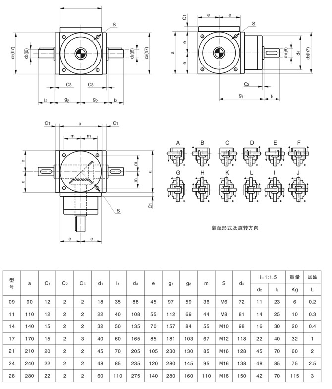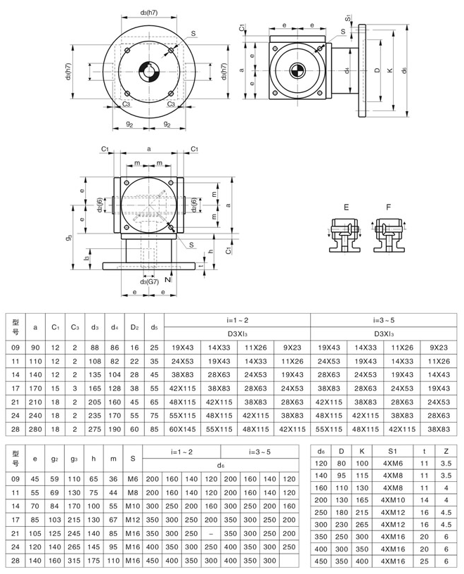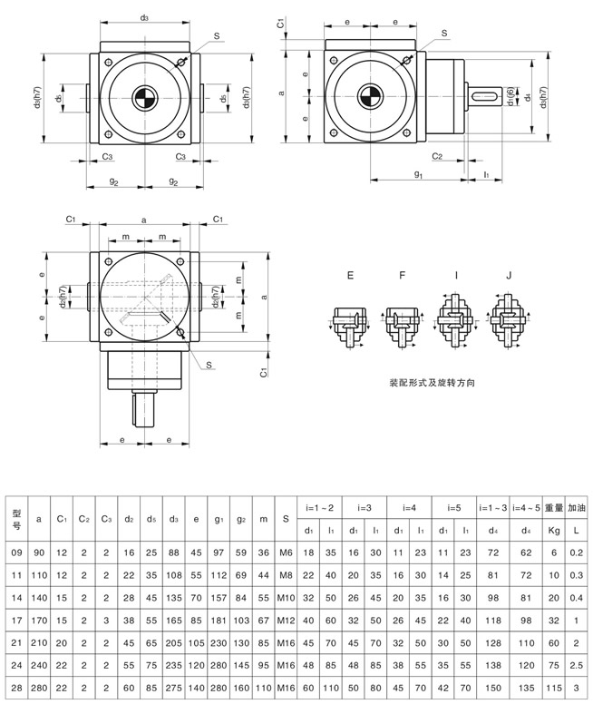 減速機(jī)圓柱形軸孔和鍵槽尺寸對(duì)照表