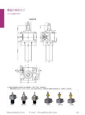 注:螺旋升降機(jī)配置附件:安全螺母SN和反齒隙裝置AB,外形尺寸有變化,請(qǐng)咨詢(xún)格魯夫。