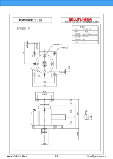 POWER BASE 尺寸圖 參數(shù)表 型號(hào) IP10000F-1S 類型 標(biāo)準(zhǔn) 負(fù)載重量 Max. 10,000Kg / 4 pcs 最大行程 2000 mm 齒輪組件 M 3 比例 1 : 1 m.xuexigo.cn 25 china@gelufu.com
