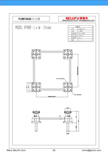 POWER BASE 尺寸圖 參數(shù)表 型號(hào) IP900F-4S 類型 標(biāo)準(zhǔn) 負(fù)載重量 Max. 900Kg 最大行程 1300 mm 齒輪組件 M 1.5 比例 1 : 1 m.xuexigo.cn 29 china@gelufu.com