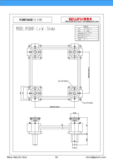 POWER BASE 尺寸圖 參數(shù)表 型號(hào) IP5000F-4S 類型 標(biāo)準(zhǔn) 負(fù)載重量 Max. 5000Kg 最大行程 1500 mm 齒輪組件 M 3 比例 1 : 1 m.xuexigo.cn 32 china@gelufu.com