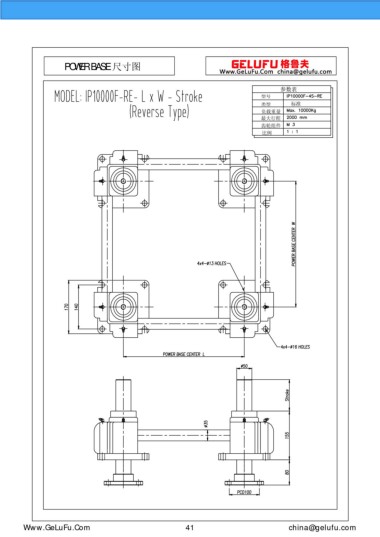 POWER BASE 尺寸圖 參數(shù)表 型號 類型 標(biāo)準(zhǔn) 負(fù)載重量 最大行程 齒輪組件 比例 m.xuexigo.cn 41 china@gelufu.com
