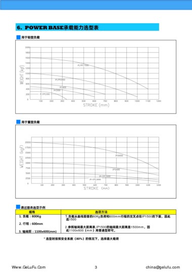 1. 負(fù)載 : 800Kg 1.負(fù)載從曲線圖查的80Kg負(fù)荷和600mm行程的交叉點(diǎn)在IP1500的下面,因此