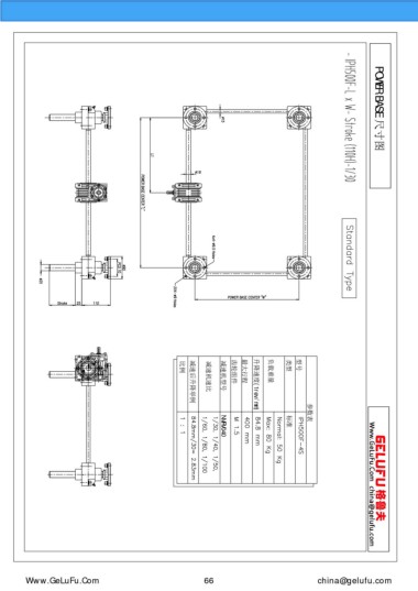 POWER BASE 尺寸圖 減速機(jī)速比 標(biāo)準(zhǔn) NMRV040 m.xuexigo.cn 比例 減速后升降舉例 66 減速機(jī)型號(hào) 齒輪組件 最大行程 升降速度(1rev/mm) 負(fù)載重量 類型 型號(hào) 參數(shù)表 china@gelufu.com
