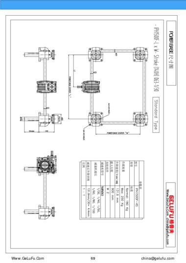 POWER BASE 尺寸圖 標(biāo)準(zhǔn) NMRV063 m.xuexigo.cn 比例 減速后升降舉例 69 減速機(jī)速比 減速機(jī)型號(hào) 齒輪組件 最大行程 升降速度(1rev/mm) 負(fù)載重量 類型 型號(hào) 參數(shù)表 china@gelufu.com