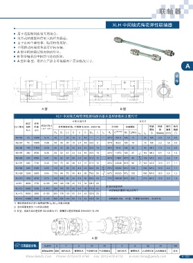 XLH 型號 扭矩 轉速 成品孔徑 d 材料鋼質40鉻;不銹鋼 SUS34、SUS316L 中間管 夾緊螺絲 鎖緊 鎖緊 軸向 角向
